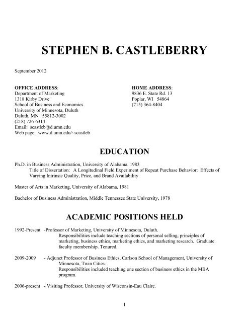 Stephen B Castleberry University Of Minnesota Duluth